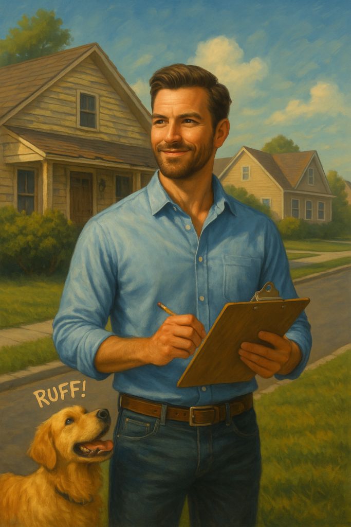 As she got closer, she saw him studying the property with laser focus, clipboard in hand, like he was either flipping it or planning a mission.