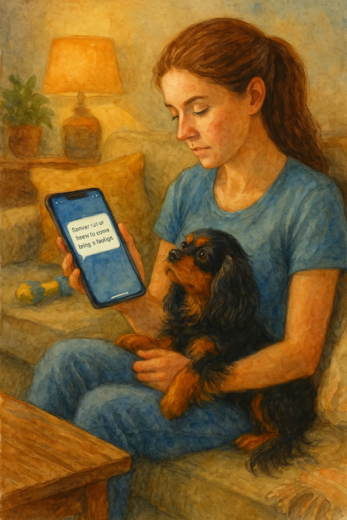 She sat cross-legged on the living room floor, surrounded by three suspiciously photogenic Cavaliers in slightly-too-small matching bandanas. The shoot had taken nearly an hour—mainly because Riggins wouldn’t stop barking at his own reflection in the sliding glass door.